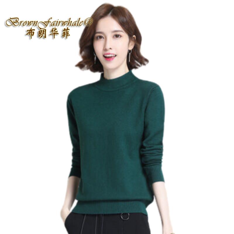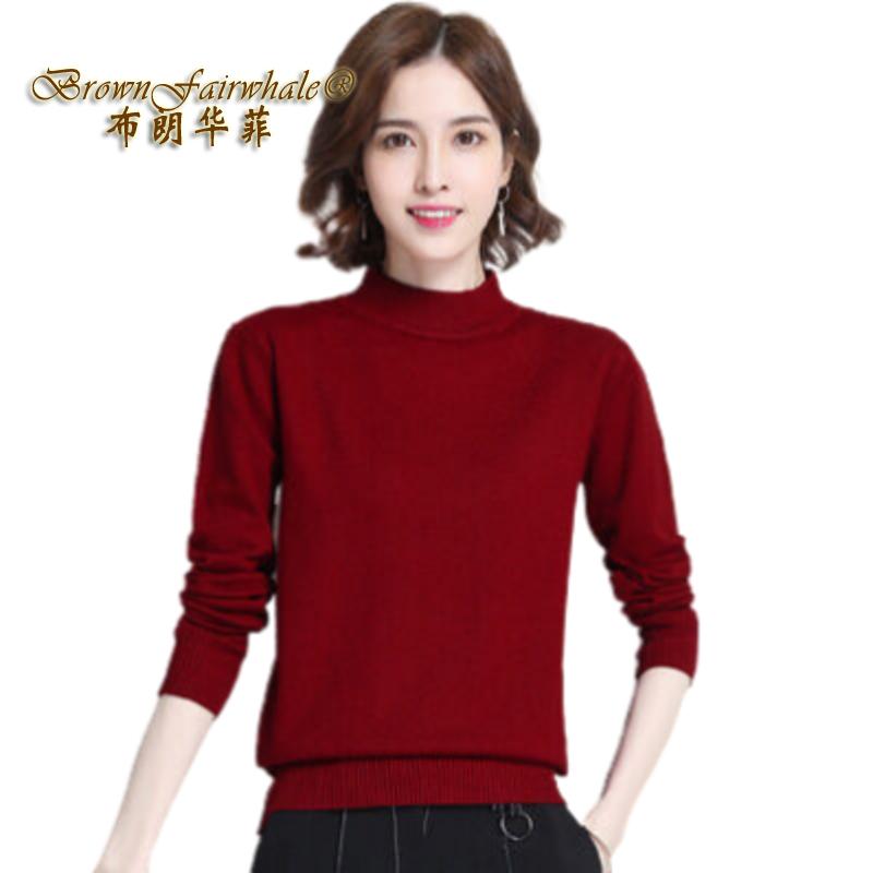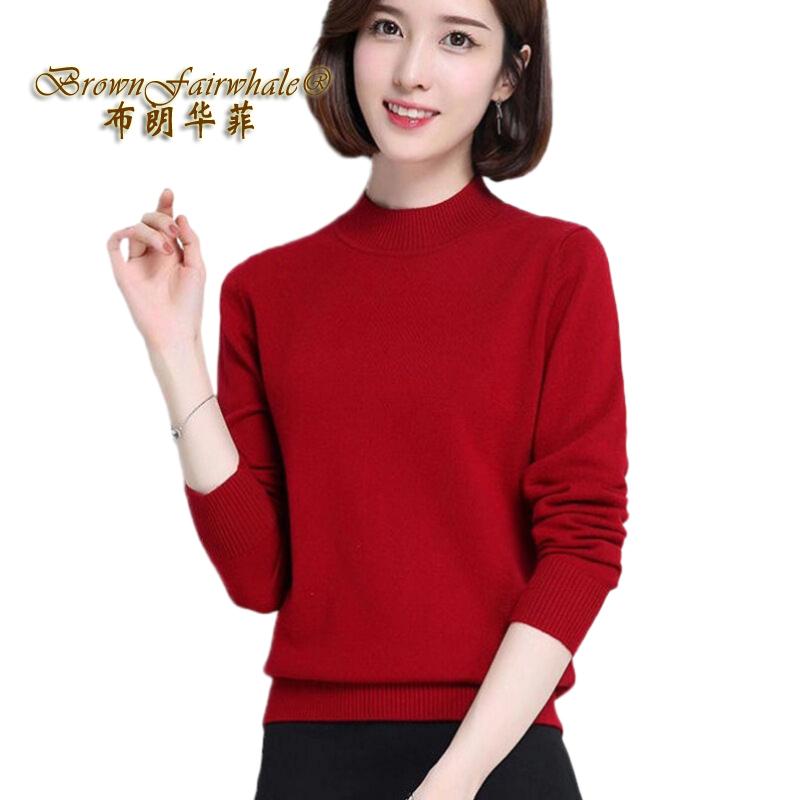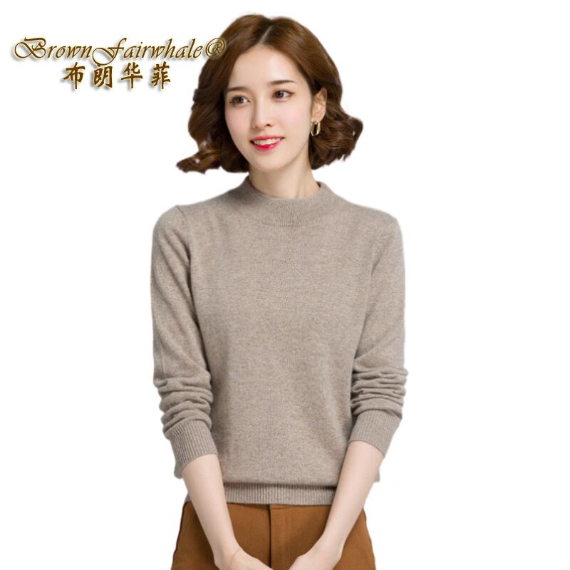 布朗华菲/BrownFairwhale 女士长袖毛衣 纯色半高领百搭套头羊毛针织衫2801