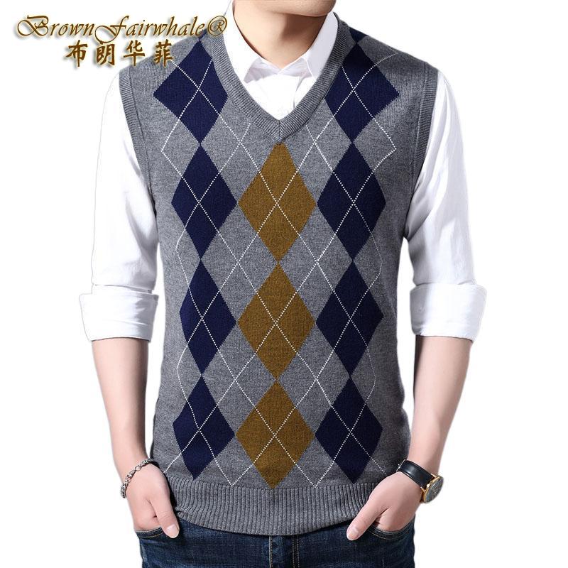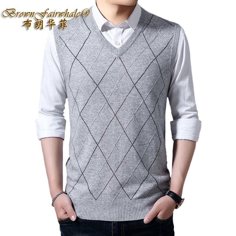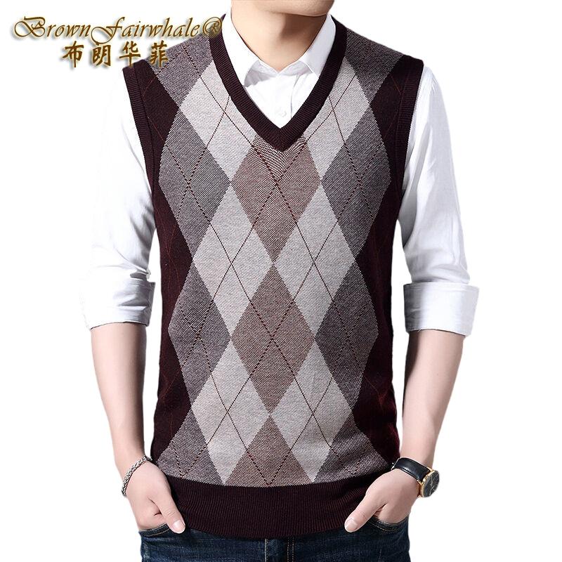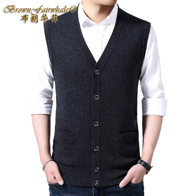 布朗华菲/BrownFairwhale 男士纯羊毛背心 V领坎肩针织衫毛衣1916