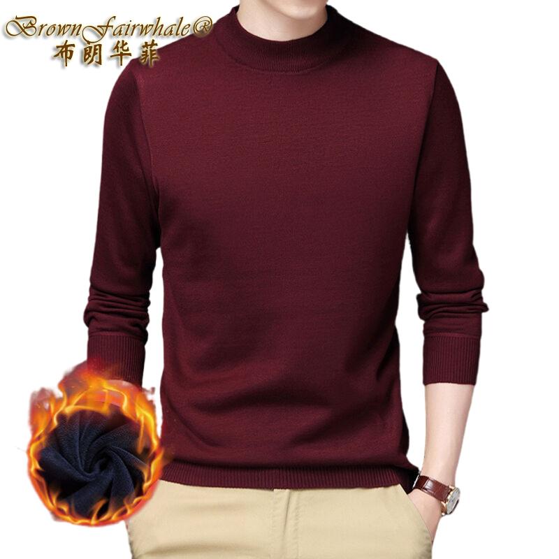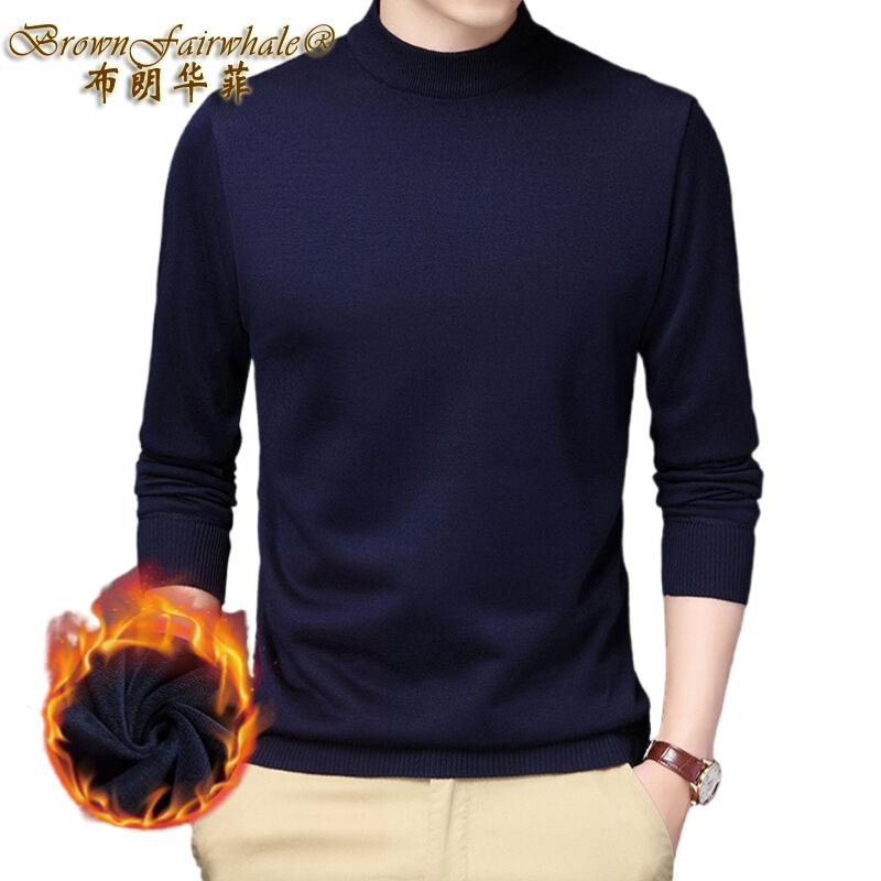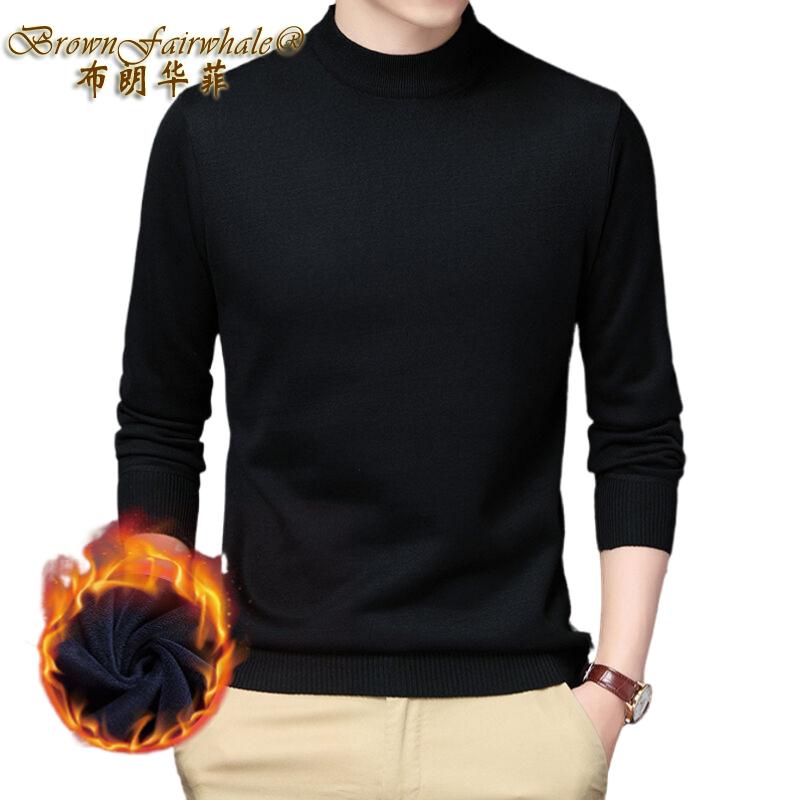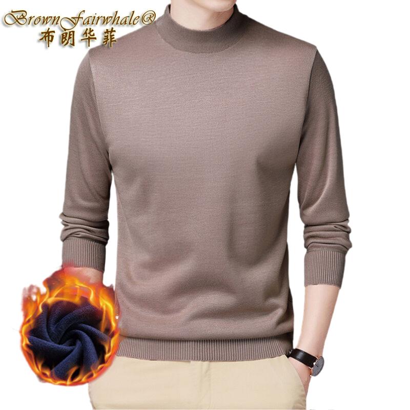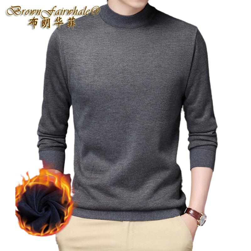 布朗华菲/BrownFairwhale 男士长袖针织衫 纯色半高圆领加绒加厚羊毛毛衣1958