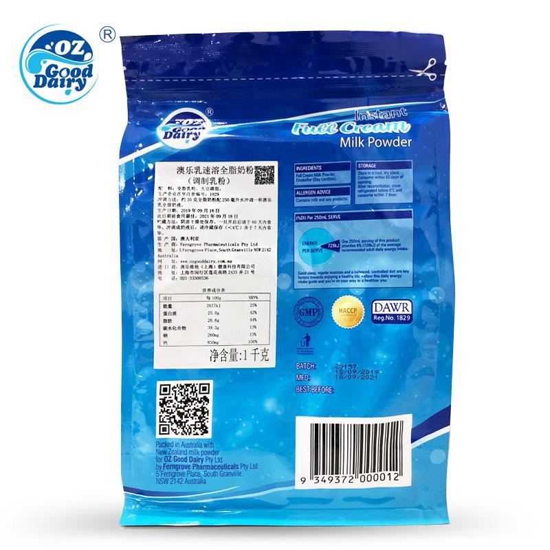 OZGoodDairy澳乐乳 澳洲原装进口青少年儿童成人全脂奶粉脱脂 1KG