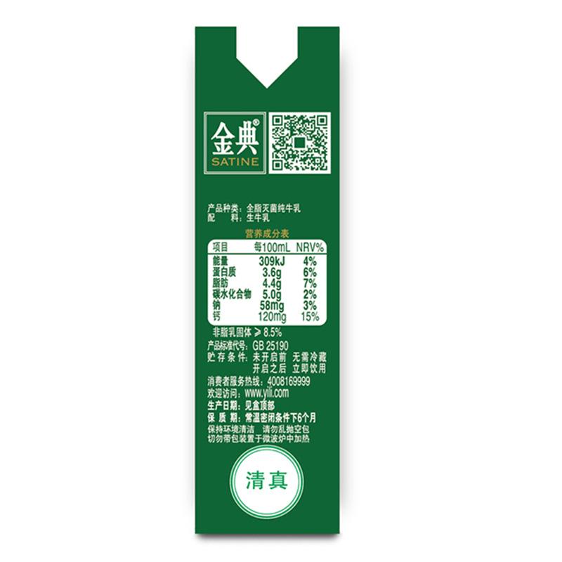 伊利 金典纯牛奶早餐奶 250ml*12盒