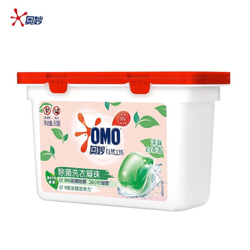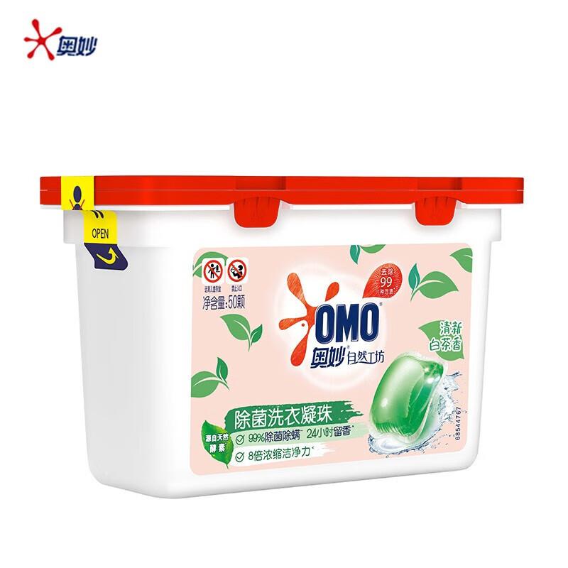 奥妙白茶除菌洗衣凝珠50颗洗衣球400g装 除菌除螨 柔顺留香 三合一浓缩