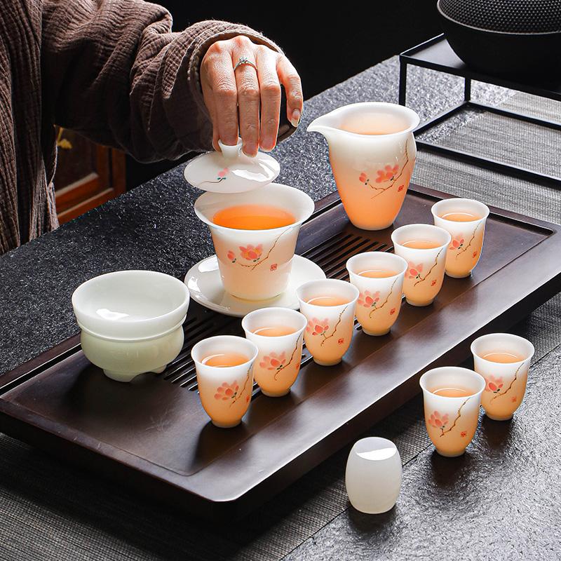 小茶犊 冰种玉瓷 手绘芳兰 德化 亮光13头 功夫茶具