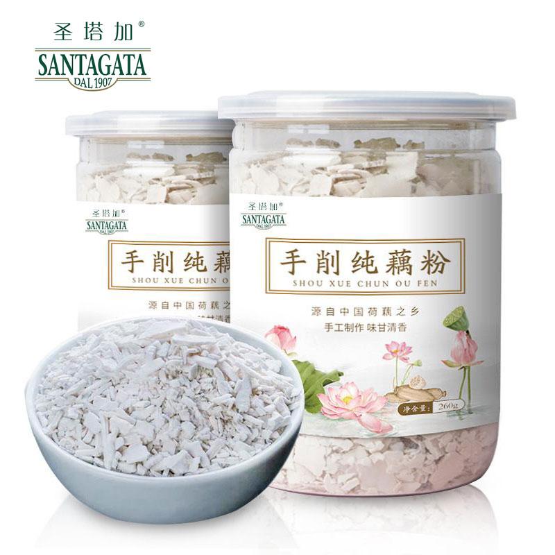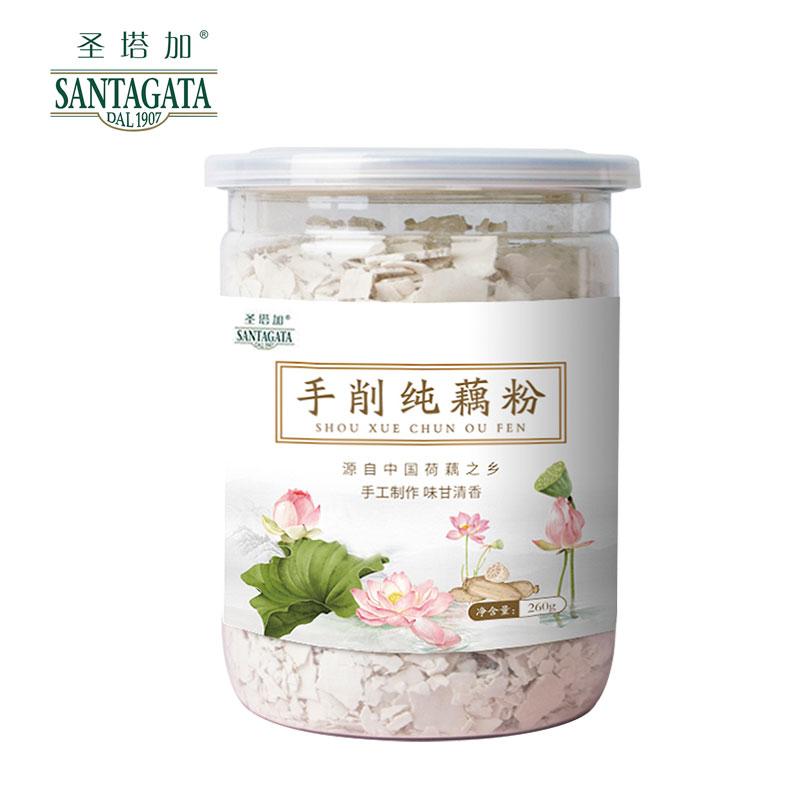 圣塔加 农家古法手工刀削鹅毛雪片纯藕粉 原味罐装 260g/520g