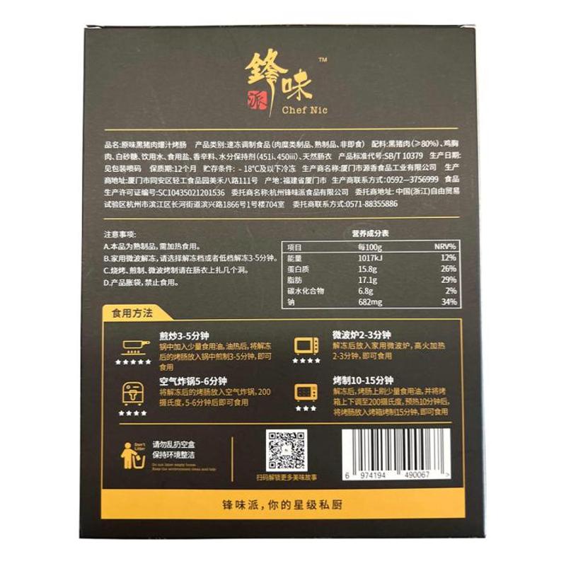 锋味派 原味黑猪肉爆汁烤肠 400g*2
