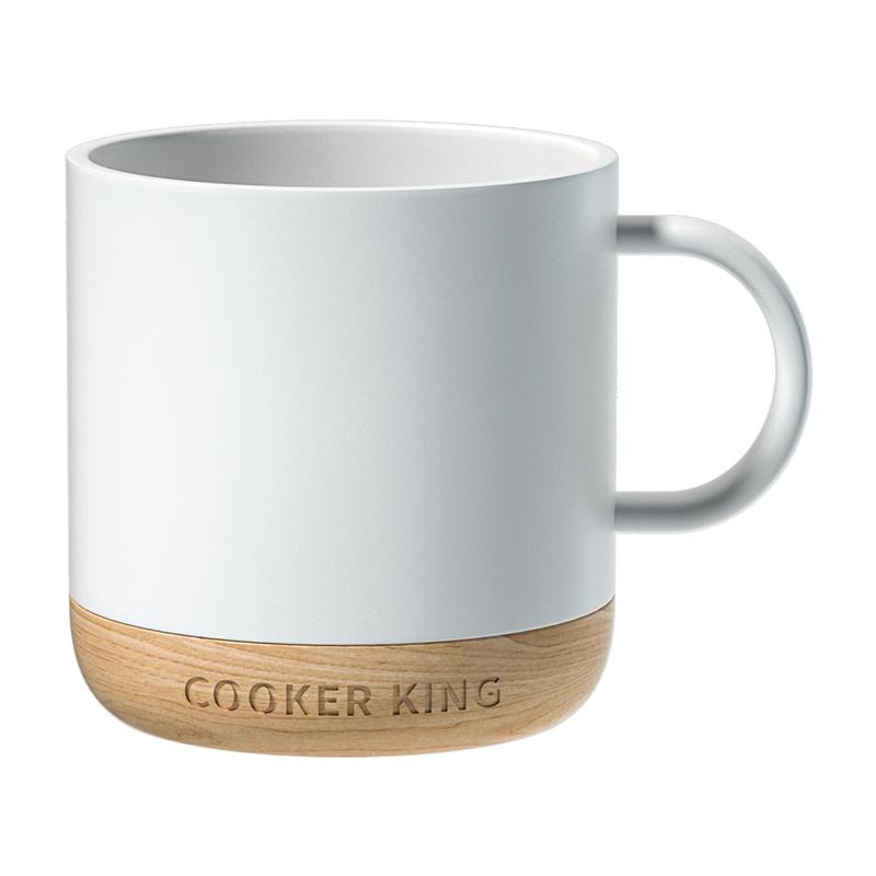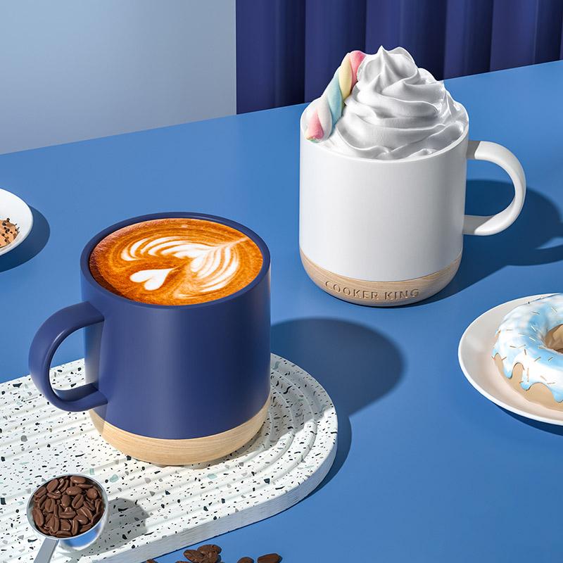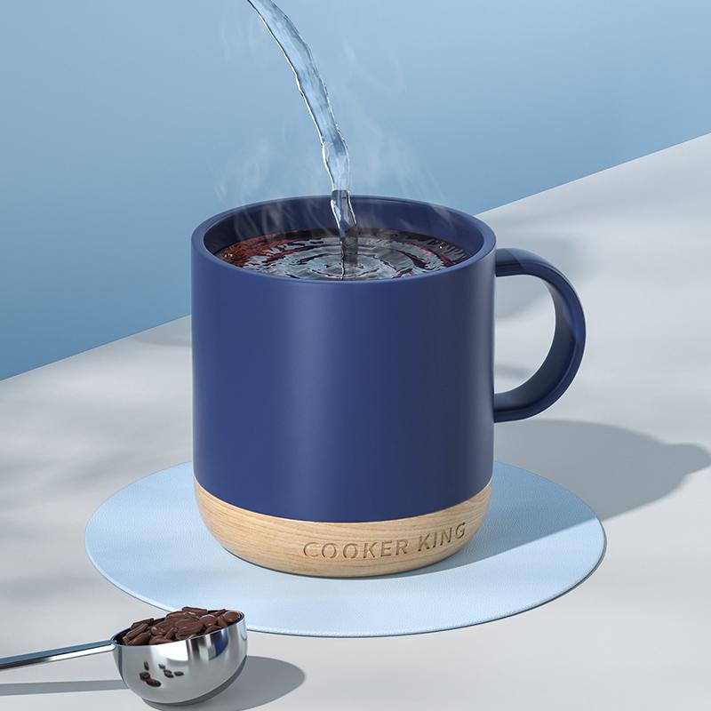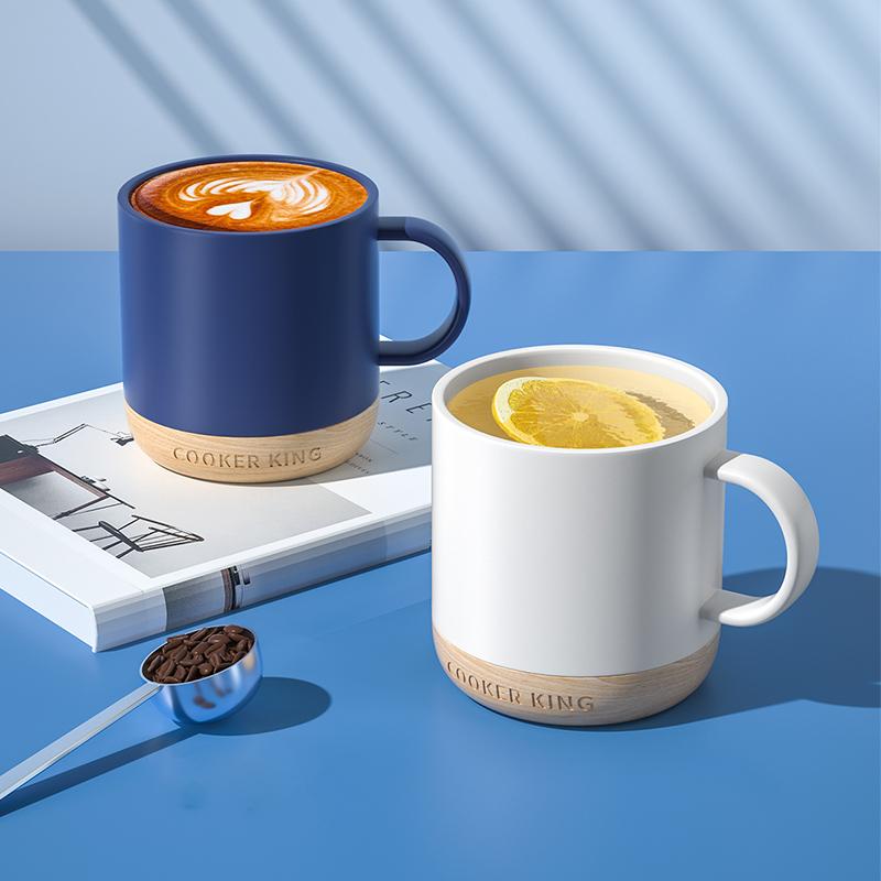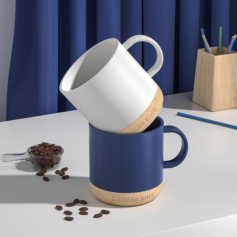 炊大皇 马克杯陶瓷杯子 家用水杯牛奶咖啡杯木底防烫350ml