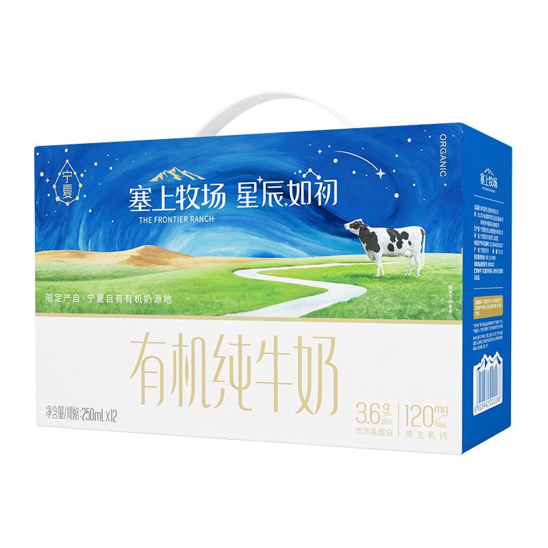 夏进 塞上牧场有机纯牛奶 3.6g乳蛋白 250ml*12盒