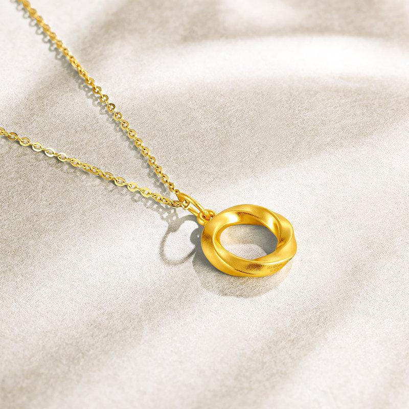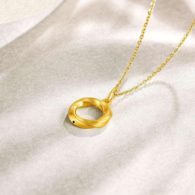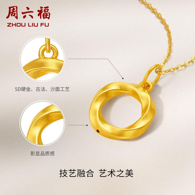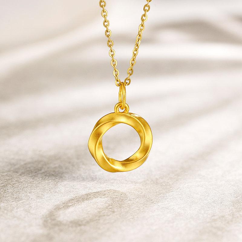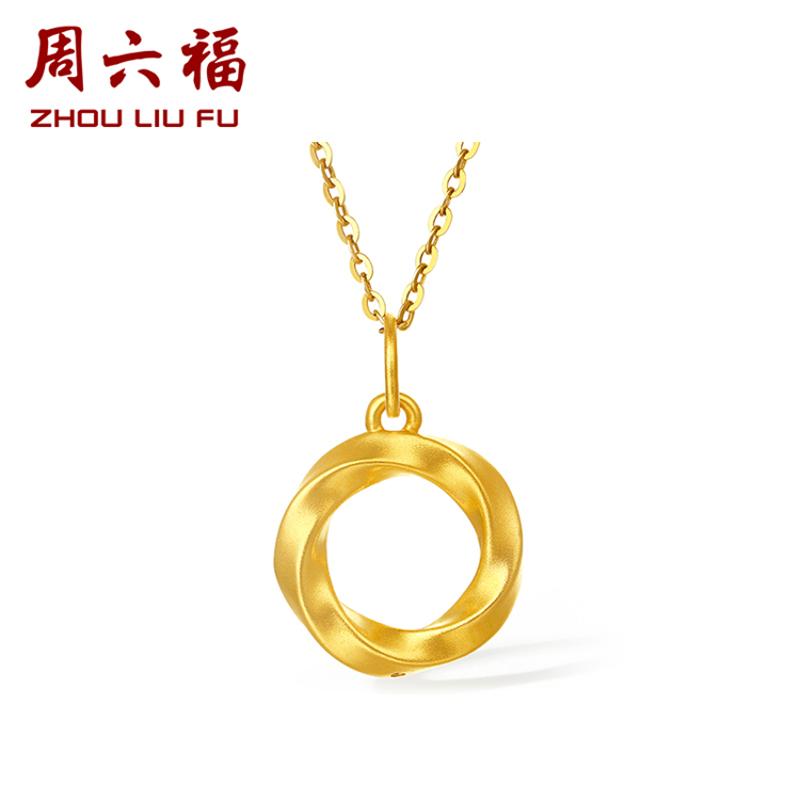 周六福七夕礼盒黄金吊坠女定价莫比乌斯环挂坠坠子足金锁骨项链送女友礼物(赠黄银链)