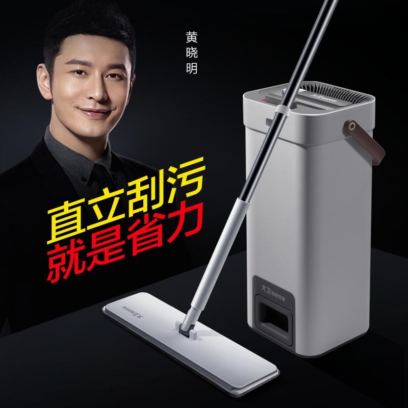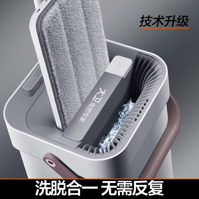大卫平板拖把(共四块拖布)免手洗拖布带桶吸水洗脱合一木地板刮刮桶拖布Z9-3