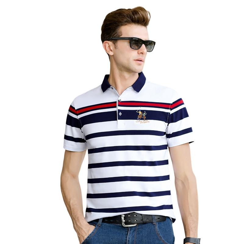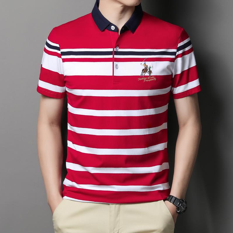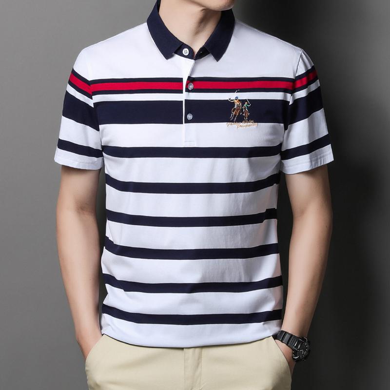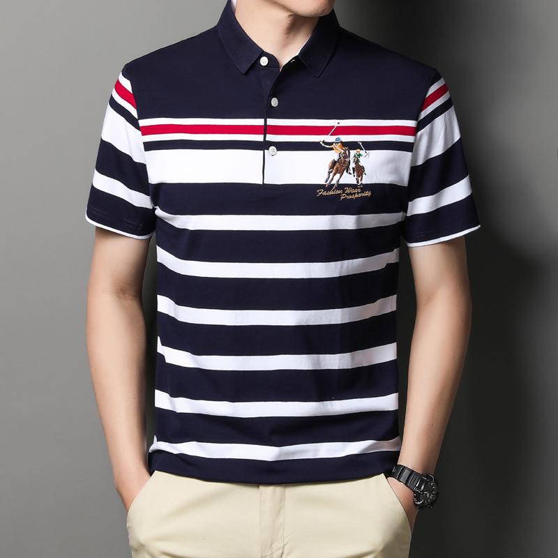 馨霓雅 男装夏款棉质短袖条纹商务休闲T恤POLO衫 S3910