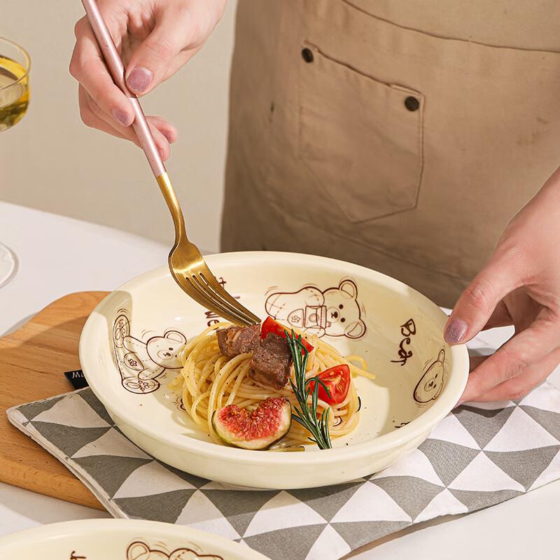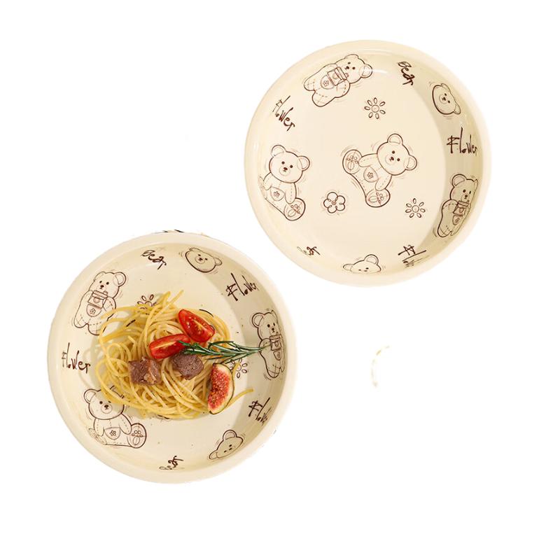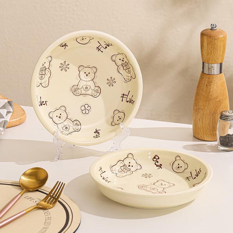 唯铭诺 憨憨熊8英寸盘2只装 家用釉下彩陶瓷餐具碗碟套装碗筷盘子