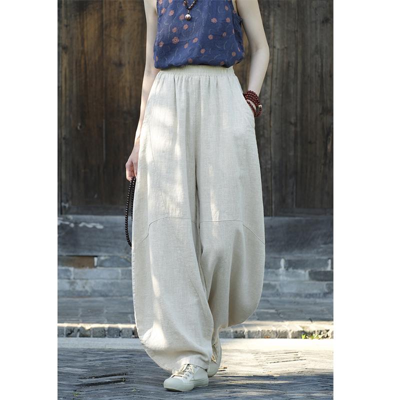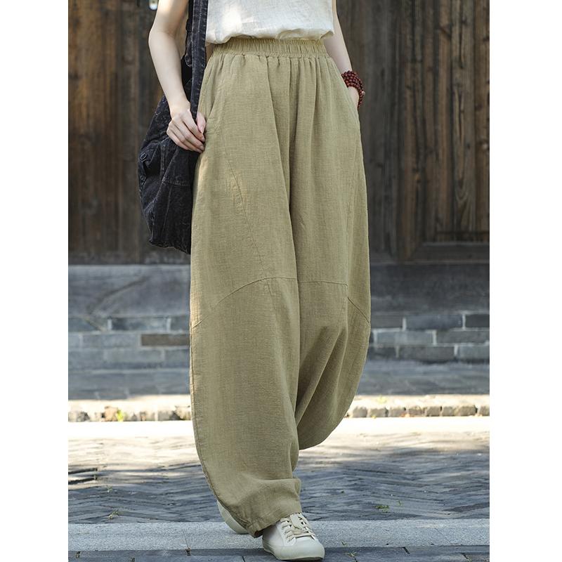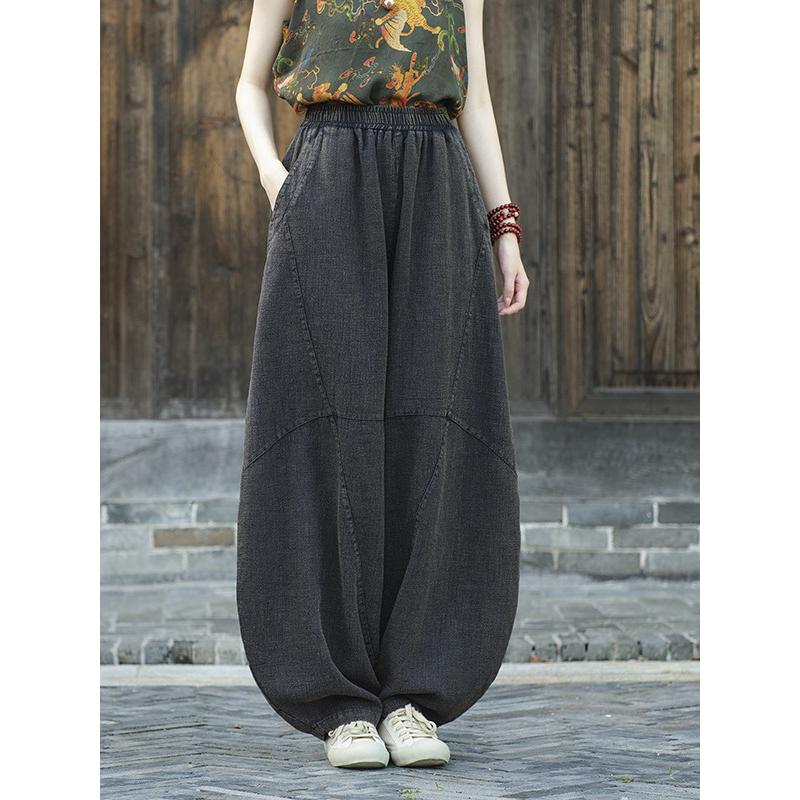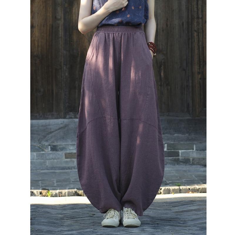 馨霓雅 女款棉麻做旧宽松休闲裤灯笼裤 W6188