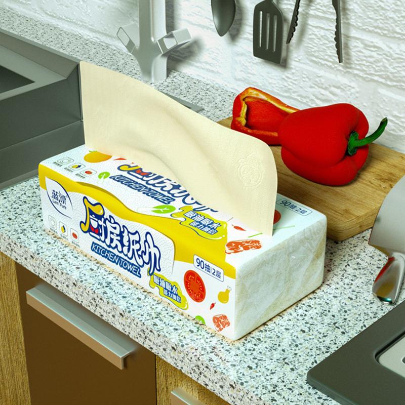 蓝漂本色厨房抽纸超大张2层90抽*4包