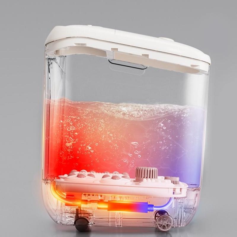 倾倒式排水,可拆式按摩盘,紫外线杀菌功能,一桶可全家使用,1000W大功率速热不等待