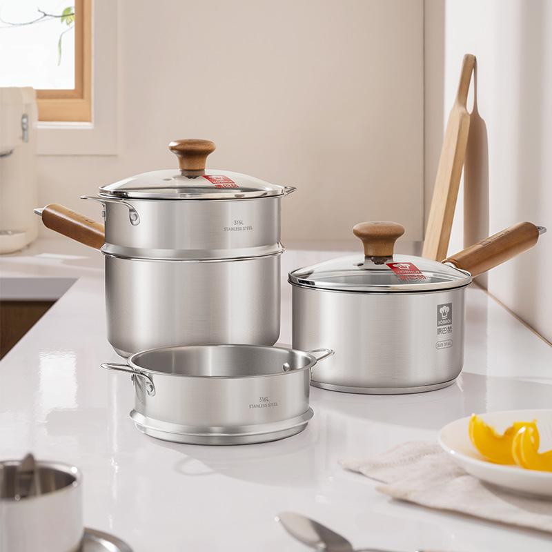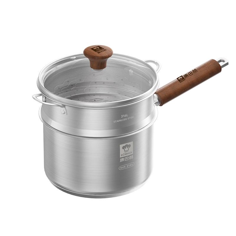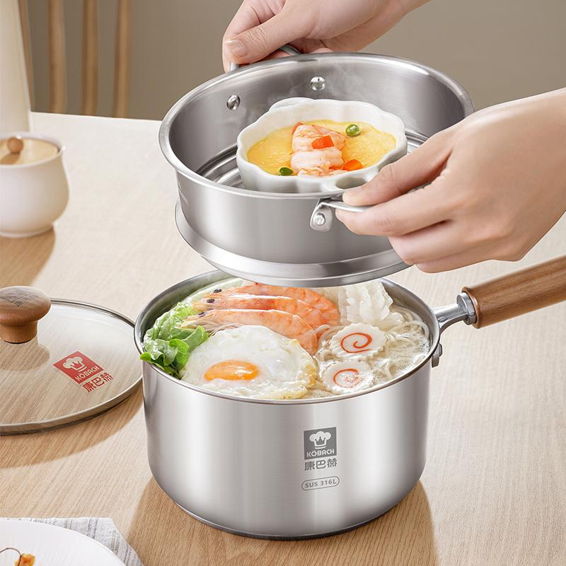 康巴赫 辅食锅 奶锅 316L不锈钢无涂层奶蒸锅煎煮一体热奶煮面锅16cm/18cm