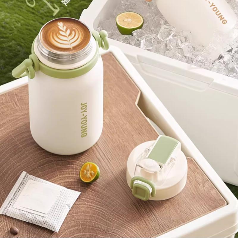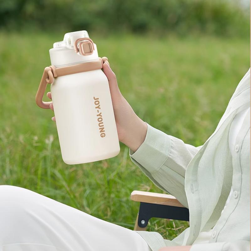 九阳 水杯 保温杯男女生316L不锈钢儿童保温杯水壶1000ml B10-WV502(浅咖)
