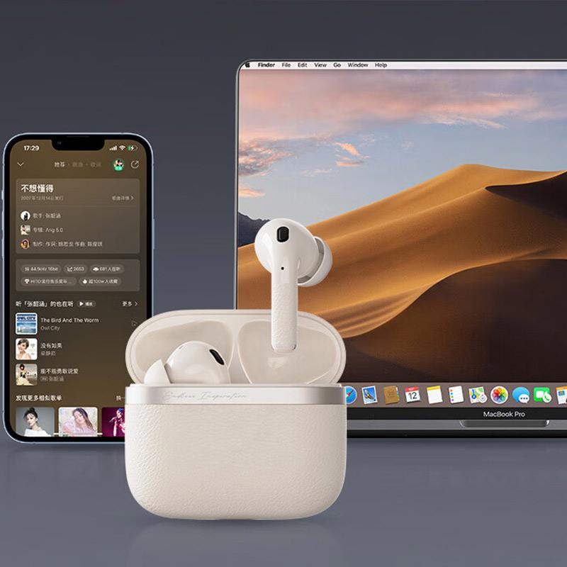 皮革纹理搭配 双设备链接 -45dB深度降噪 32小时长续航 IP54防尘放水 EQ个性音效五种降噪