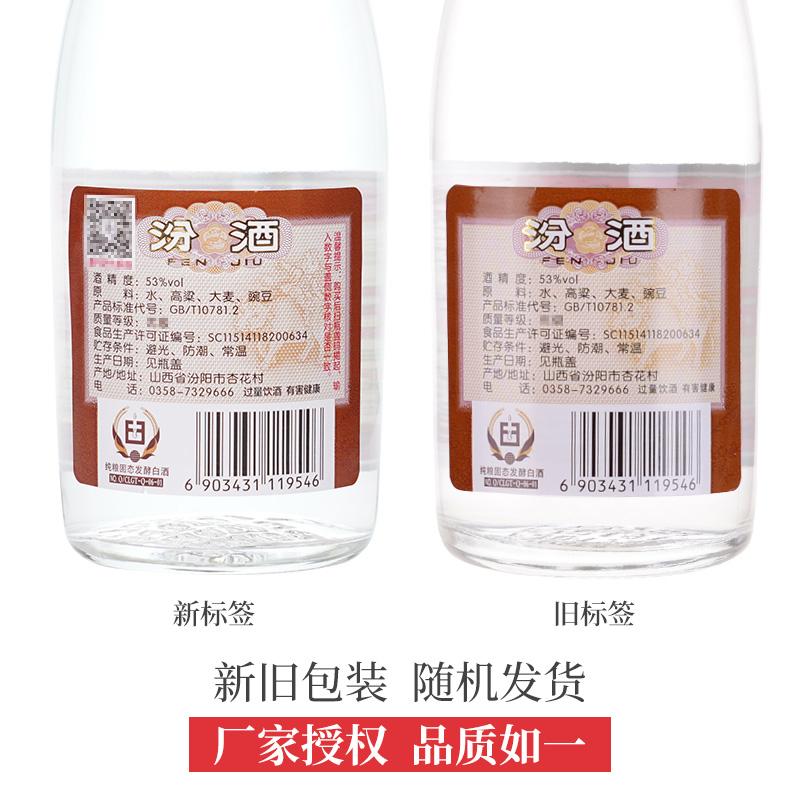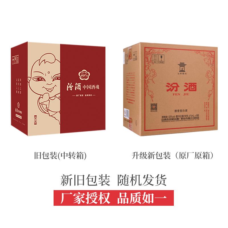 汾酒 山西杏花村53度黄盖玻汾纯粮酿造 475ml*6瓶