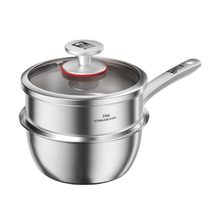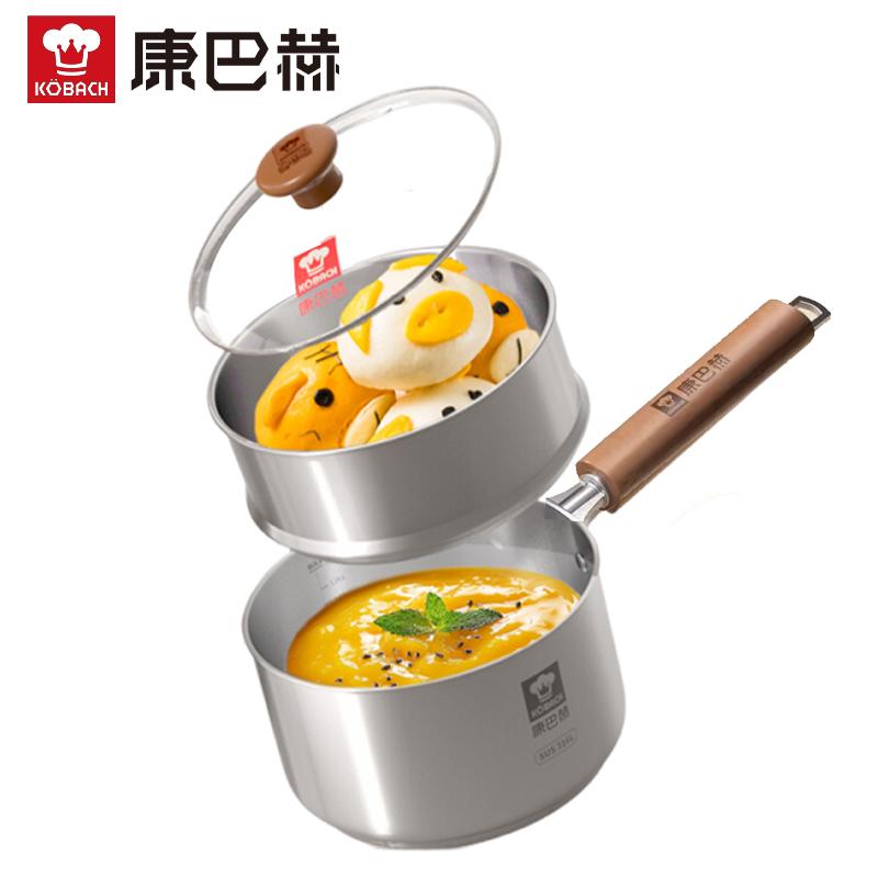 康巴赫 无涂层小奶锅宝宝专用健康辅食锅家用汤锅奶蒸锅汤蒸锅煮面锅不粘锅