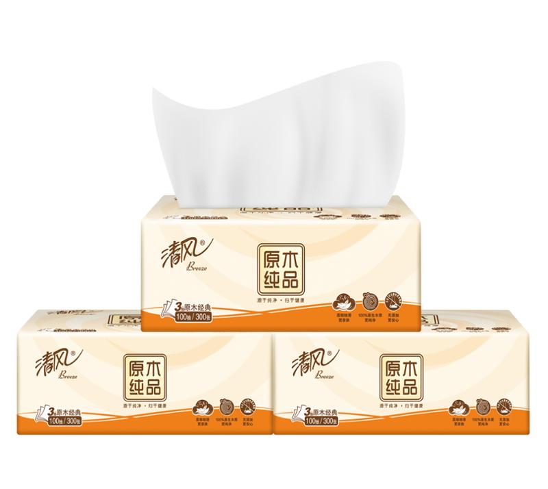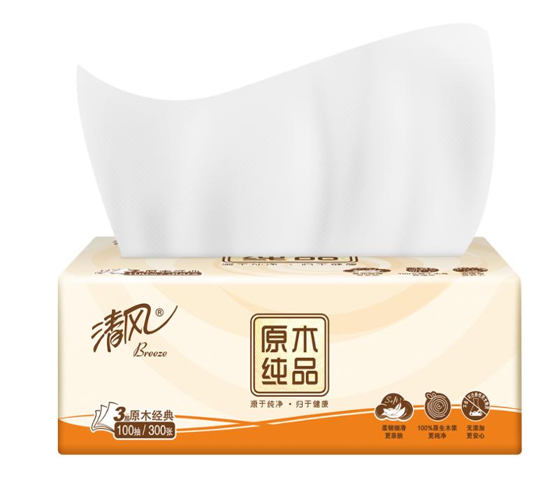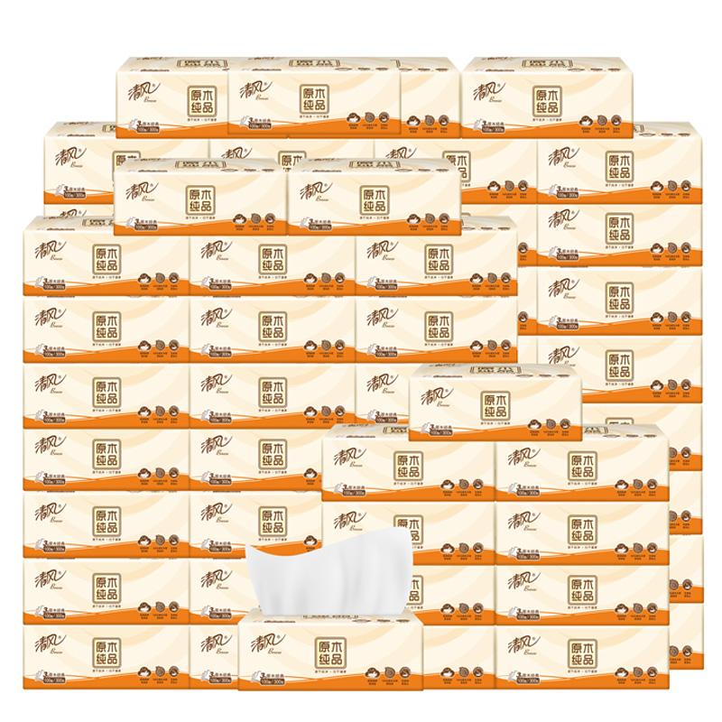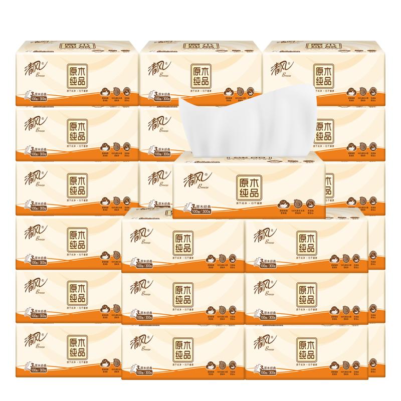 清风抽纸原木纯品3层100抽60包/30包/3包/2包多种规格