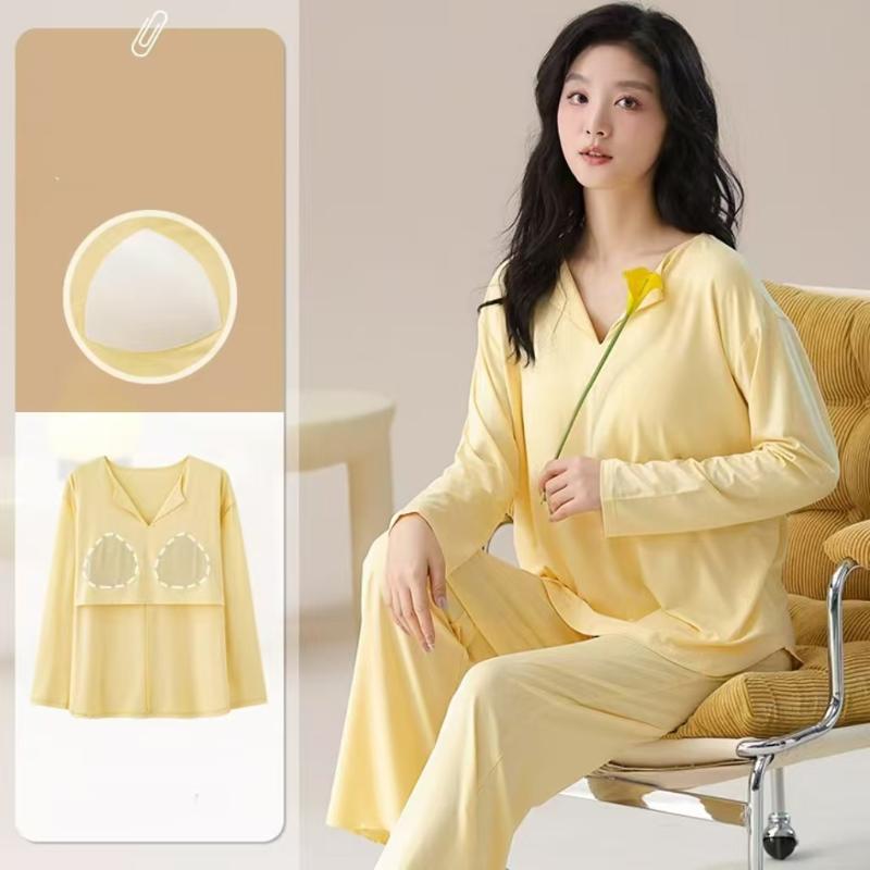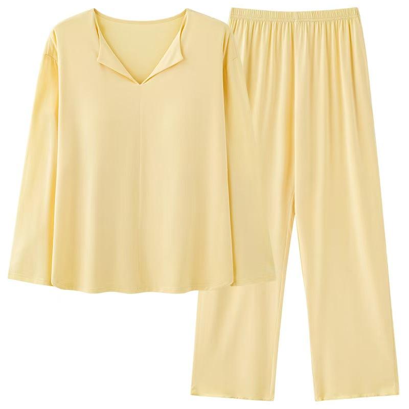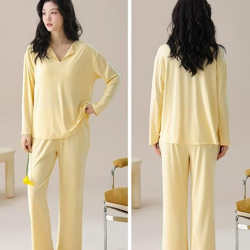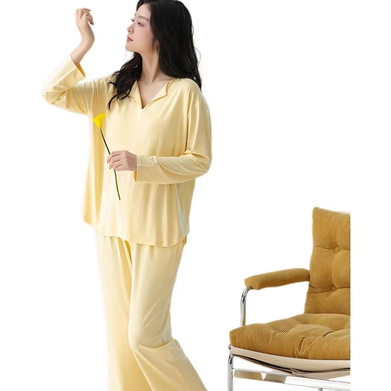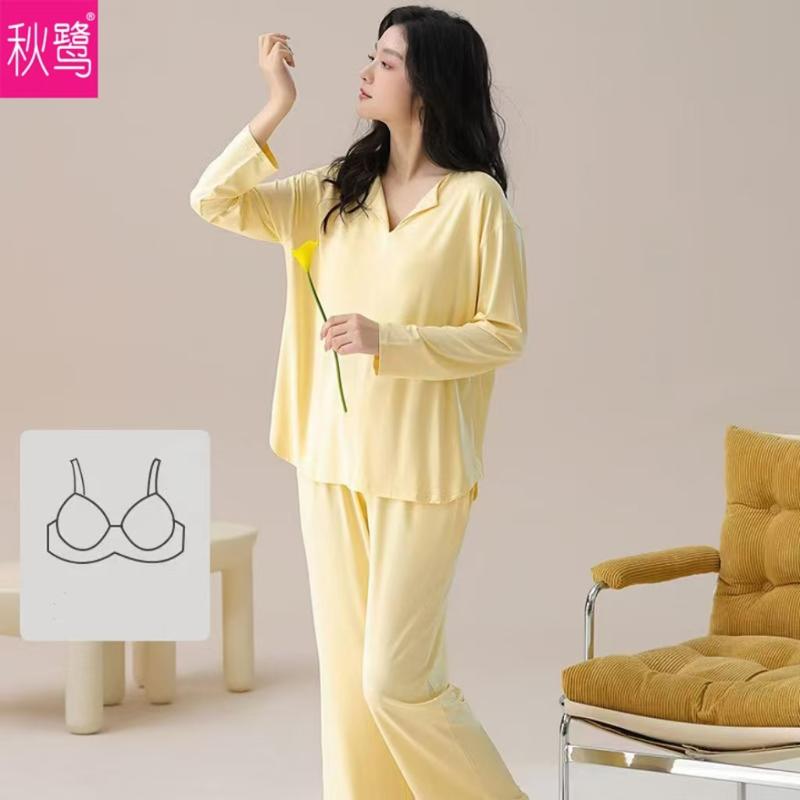 秋鹭/Qiu Lu 带胸垫莫代尔女宽松长袖纯色家居服套装 休闲透气舒适 可外穿
