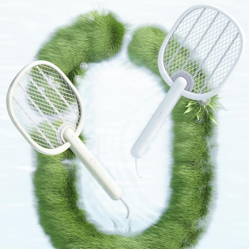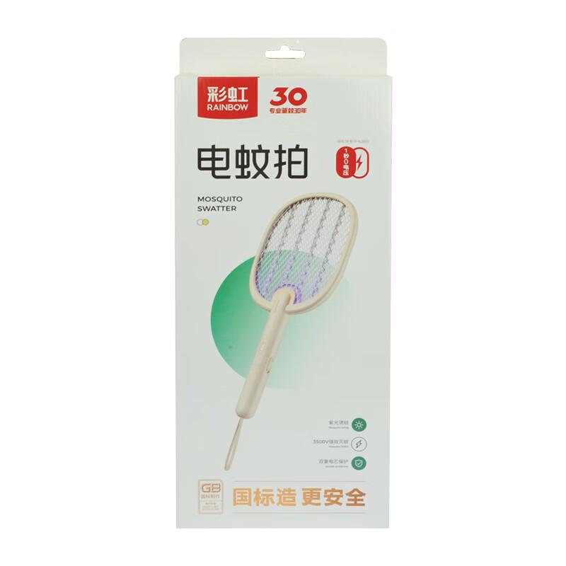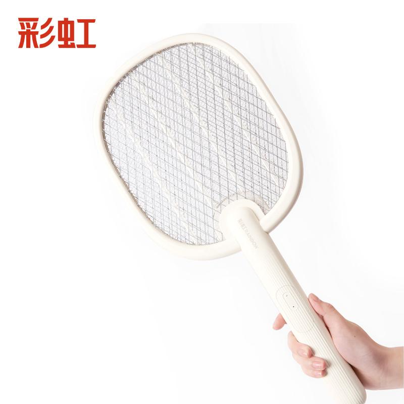 彩虹 电蚊拍USB充电式灭蚊拍苍蝇拍紫光诱蚊灯二合一式物理杀蚊神器 6100.(坐立款和挂绳款随机)
