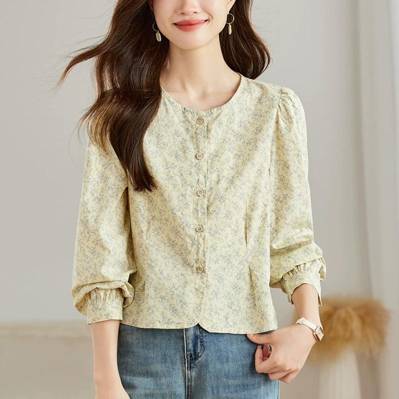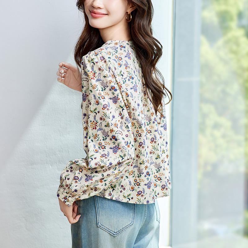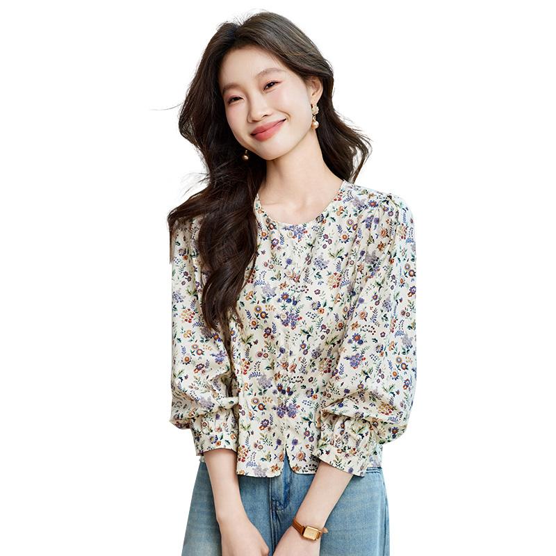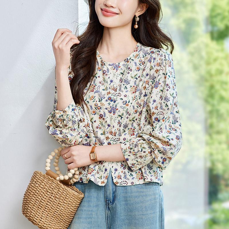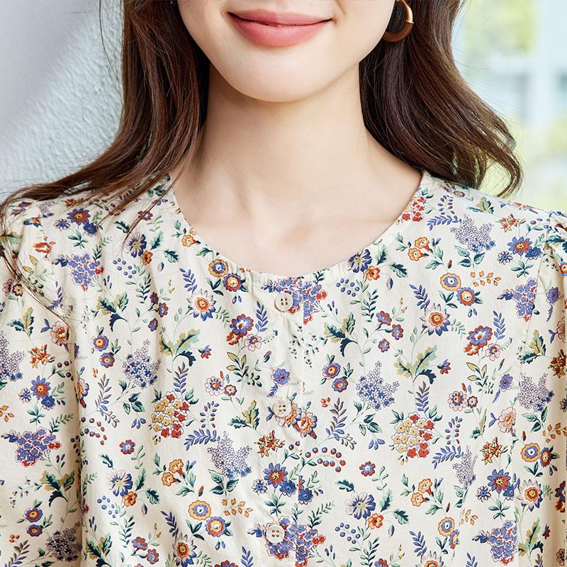 馨霓雅 女款长袖碎花薄款田园风圆领衬衫 M47026