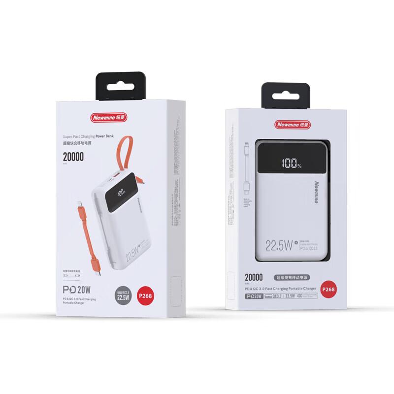 纽曼 迷你全兼容2万毫安充电宝移动电源22.5W快充PD快充自带线 P268