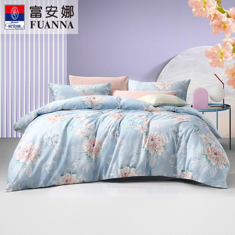 富安娜/FUANNA 全棉小清新田园风印花四件套 国风纯棉套件