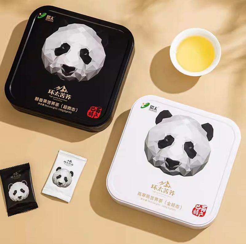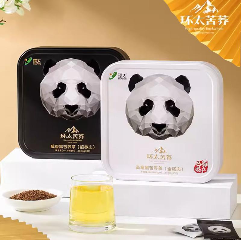 环太苦荞黑白熊猫大凉山黑苦荞茶礼盒铁盒180g*2