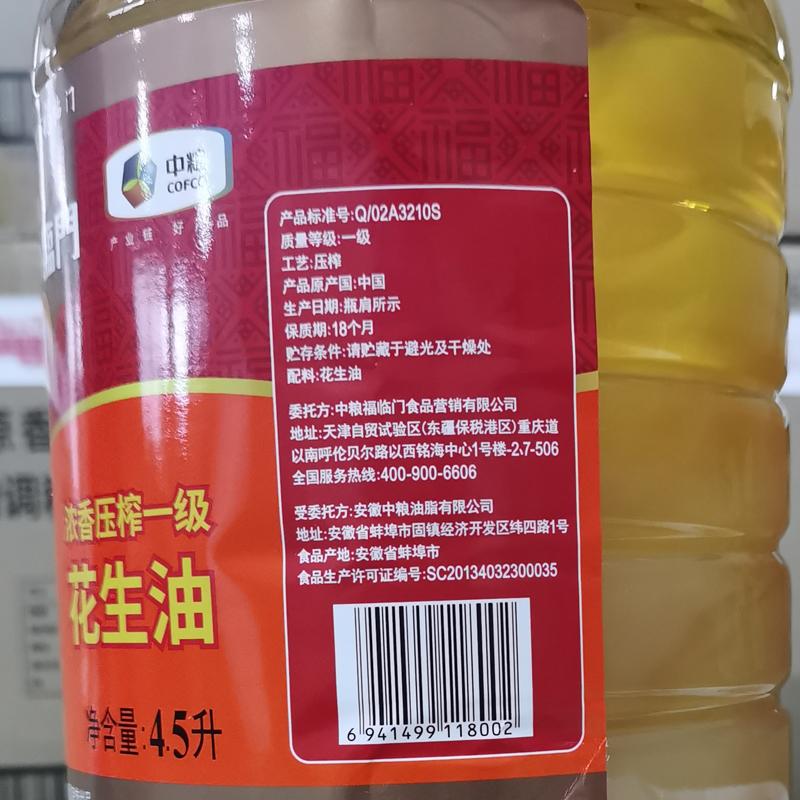 福临门 浓香压榨一级花生油 4.5L