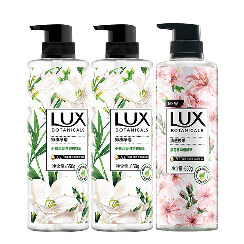 力士 精油香氛沐浴露550g*3瓶 小苍兰香与茶树精油 樱花香与烟酰胺 共1650g