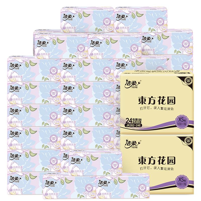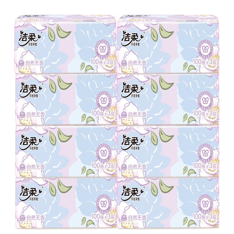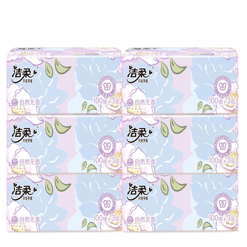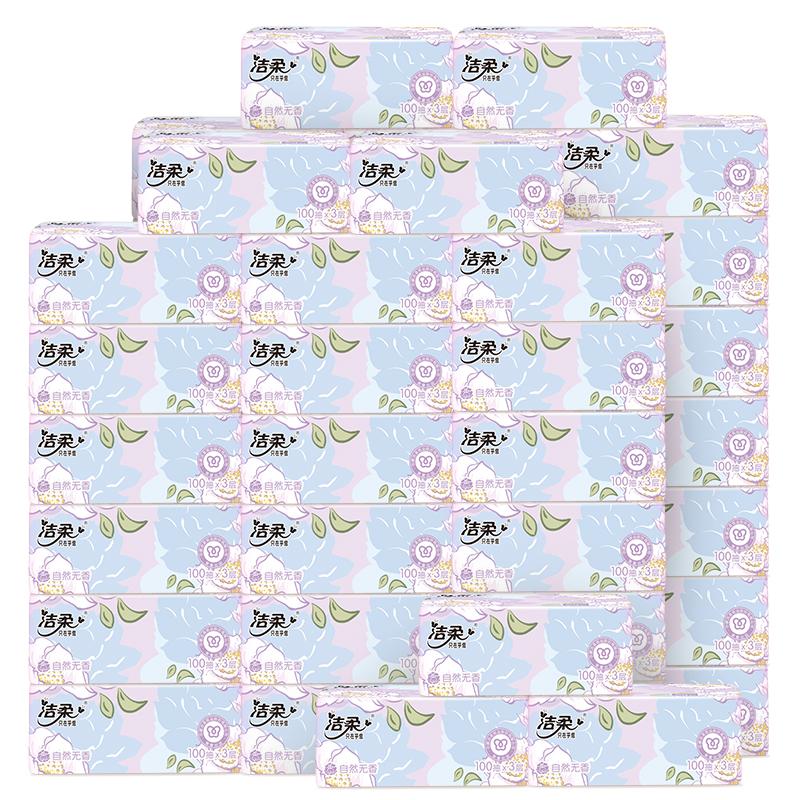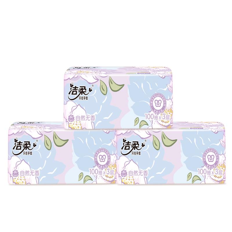 洁柔抽纸东方花园3层100抽*48包家用纸巾
