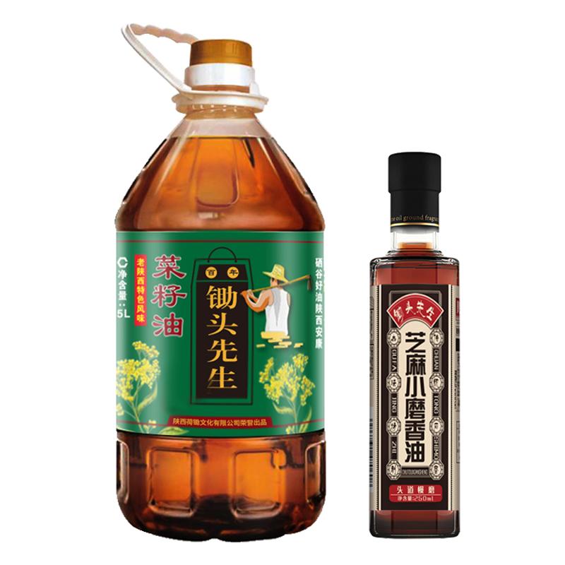 锄头先生 纯正菜籽油非转基因食用油5L+芝麻香油麻油 250ml