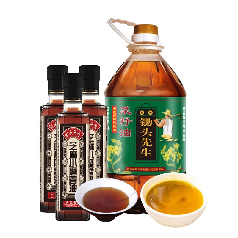 锄头先生 纯正菜籽油非转基因食用油5L+芝麻香油小磨香油 250mlx3瓶