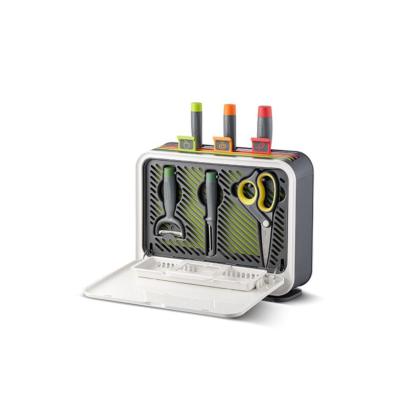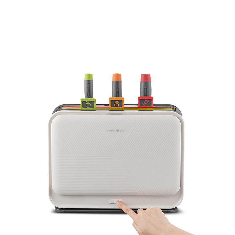 专板专刀生熟分类;嵌入式收纳一体美观;可拆卸设计轻松清洗;热风烘干双重杀菌;食品级材质,健康安全。