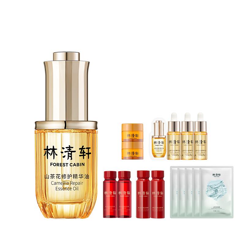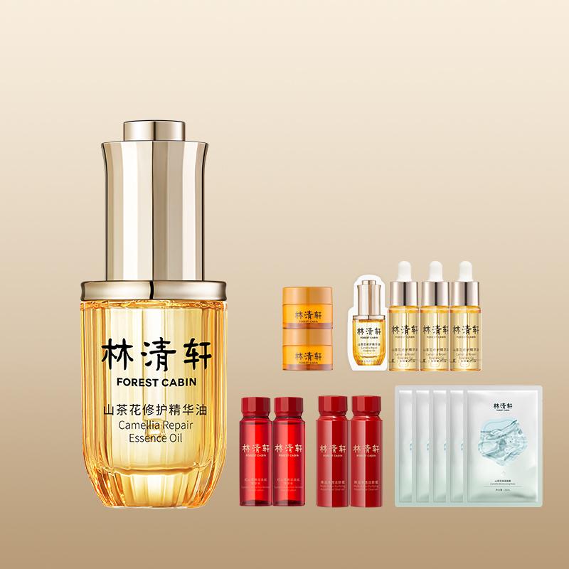 山茶花抗老精华油10ml*3+山茶花抗老精华油0.7ml+山茶花多肽抗皱面霜6mI*2+红山茶洁颜蜜30m*2+红山茶花淡纹精华水30ml*2+保湿面膜25ml*5