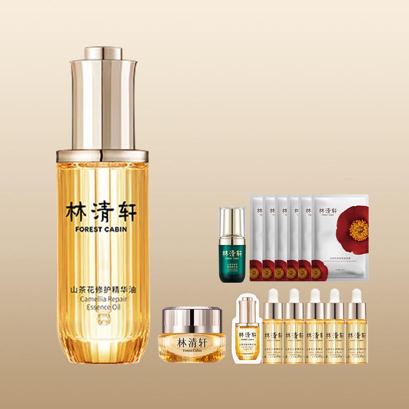 山茶花抗老精华油10ml*5+山茶花抗老精华油0.7ml+山茶花多肽抗皱面霜15ml+ +眼部精华液15ml+保湿紧致面膜27ml*6