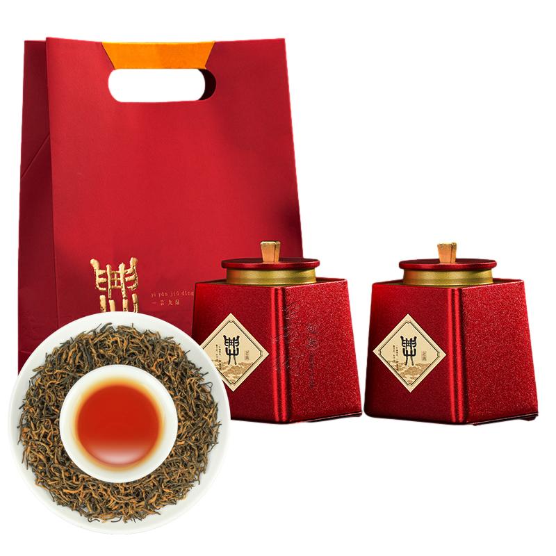 瓯叶 安康红茶金骏眉工艺 礼盒装配礼袋300g(150gx2罐)