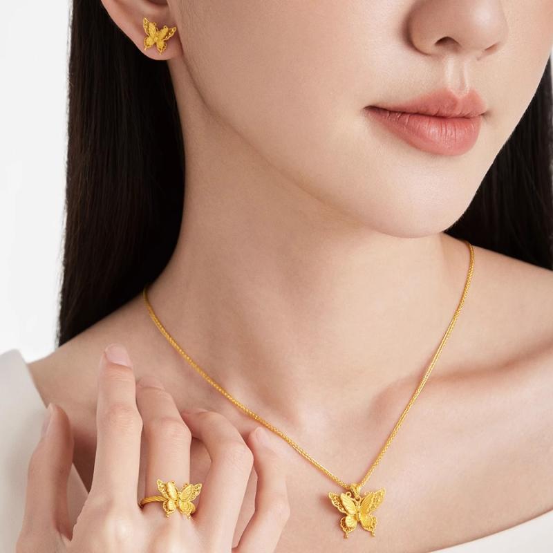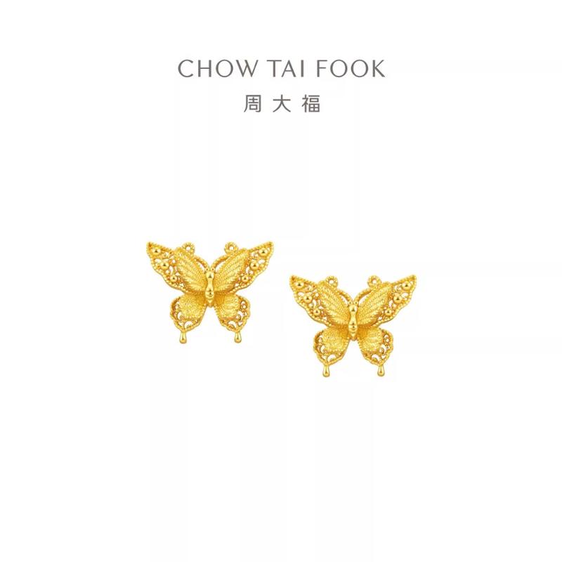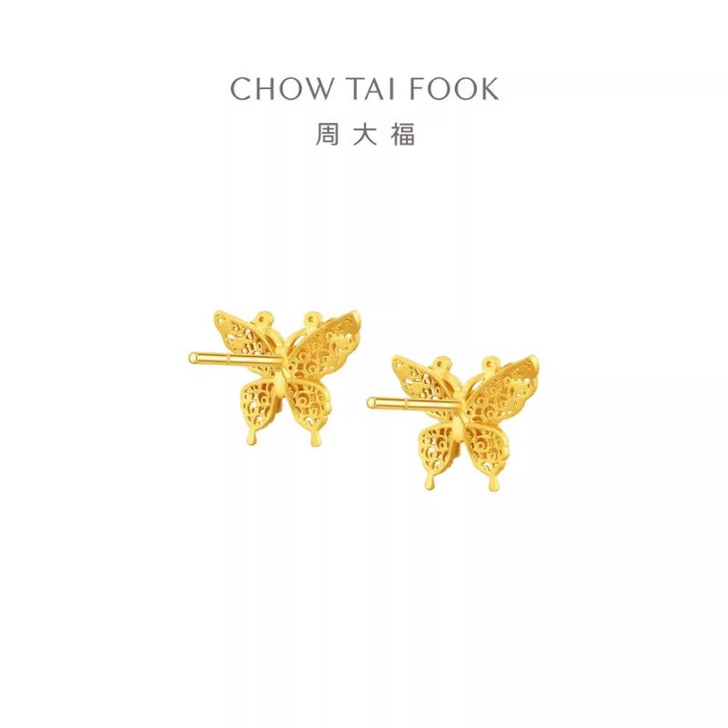 周大福金丝羽蝶蝴蝶足金黄金耳钉女计价EOF1371礼物【工费 360元】