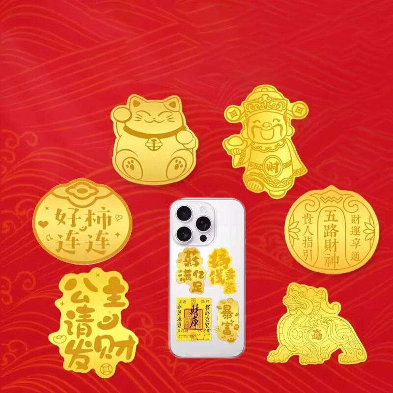金师傅足金黄金手机贴财库金符贴片招财暴富520情人节生日礼物送老婆老公