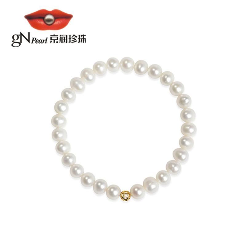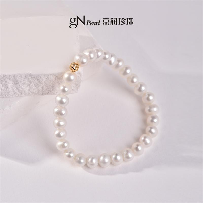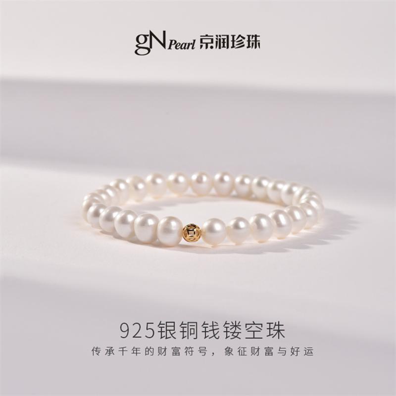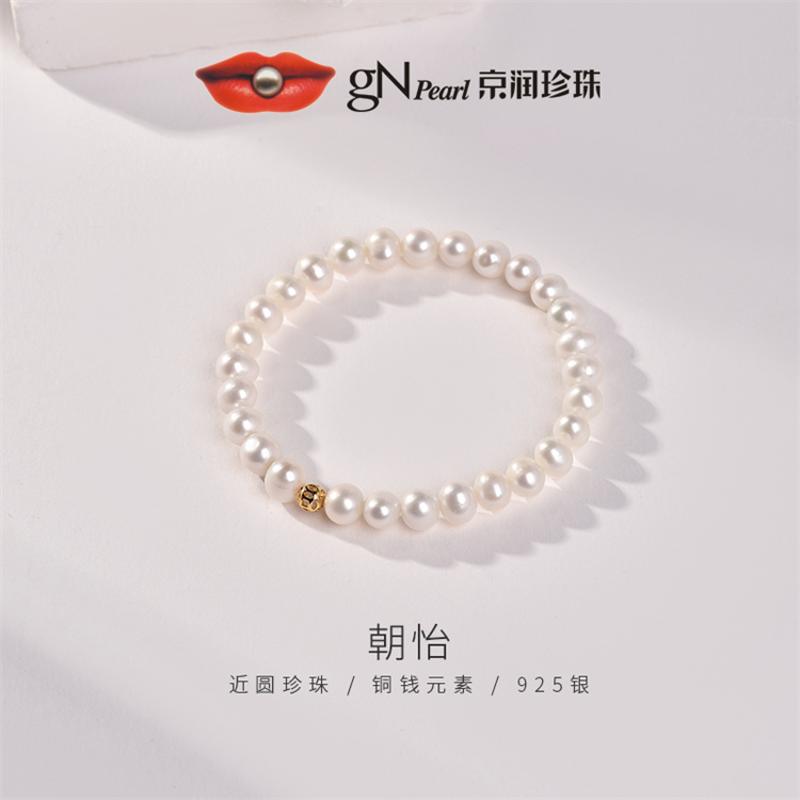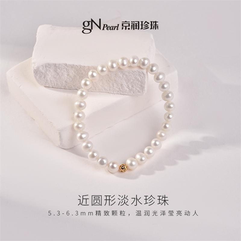 京润珍珠 朝怡925银淡水珍珠手链5.3-6.3mm近圆形白色节日礼物女