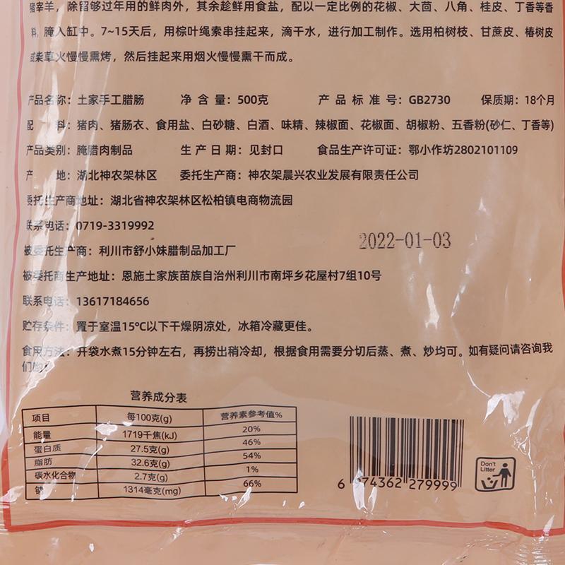 原材铺 神农架腊香肠 500g