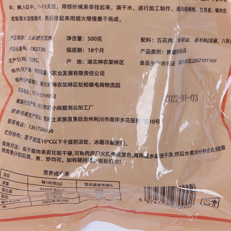 原材铺 神农架腊五花肉 500g