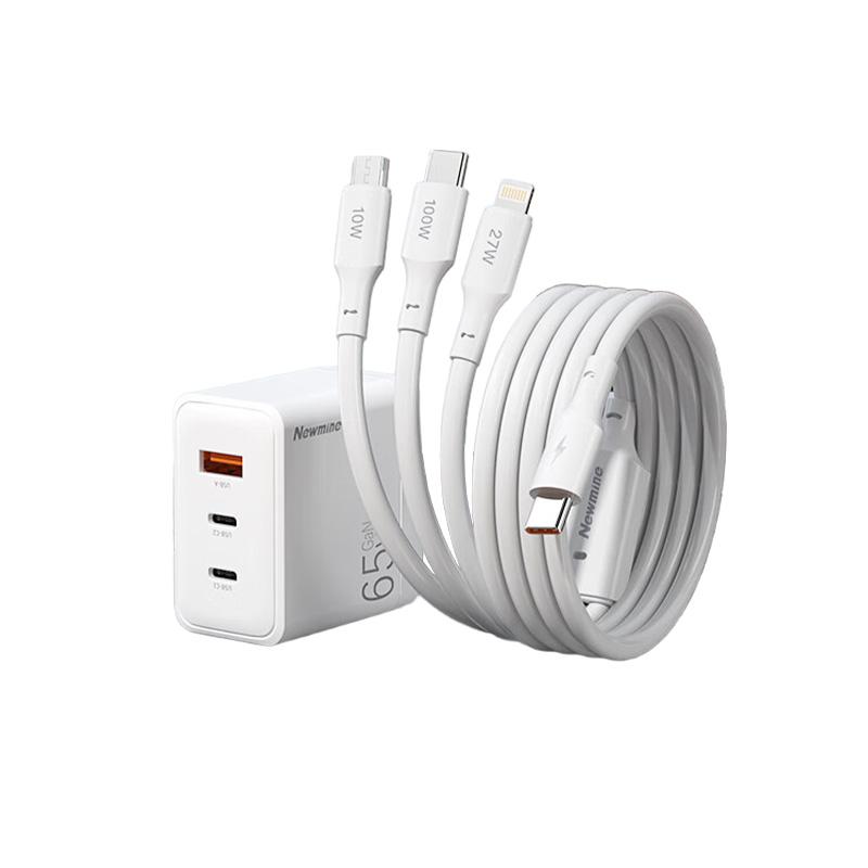 纽曼 充电线三合一数据线充电套装快充多口苹果/Type-c/安卓USB-C 携带方便一拖三