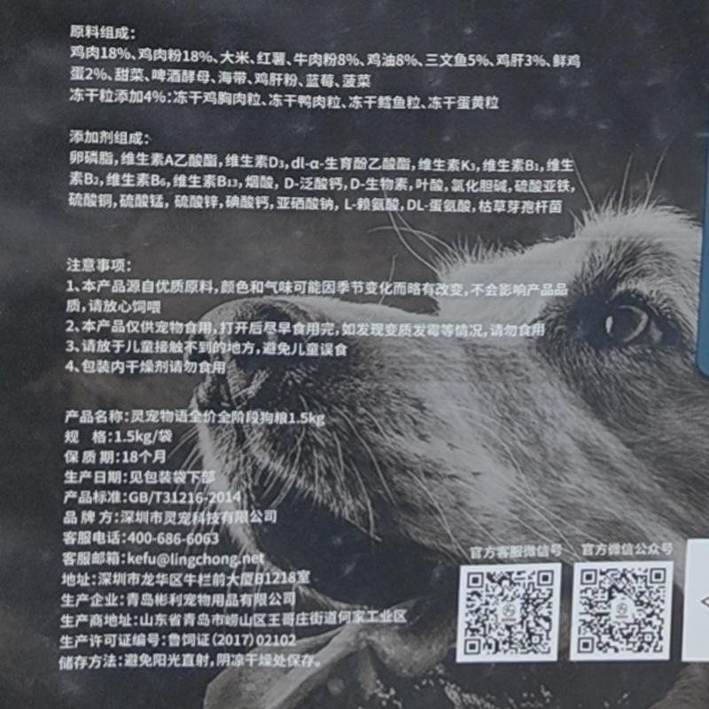 灵宠物语食用宠物主粮全价全阶段鸡肉配方狗粮1.5kg