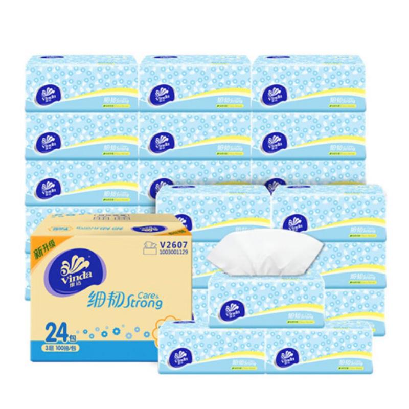 维达(Vinda)细韧软抽3层100抽24包抽纸餐巾纸卫生纸整箱