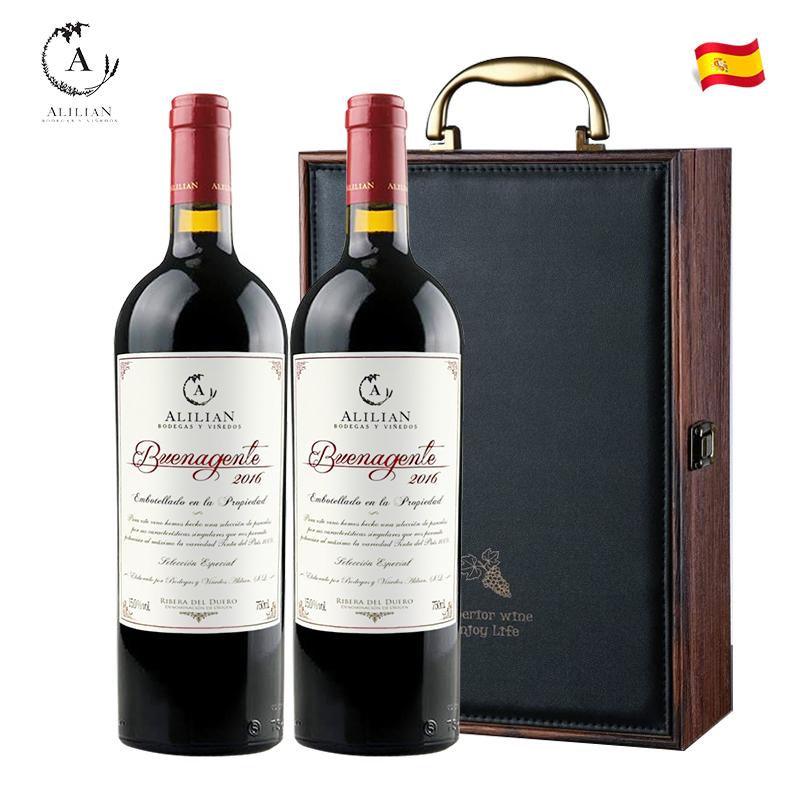 茉兰朵 阿里亮 西班牙原瓶原装进口15°横帝丹魄干红葡萄酒老藤 750ml*2精致皮礼盒