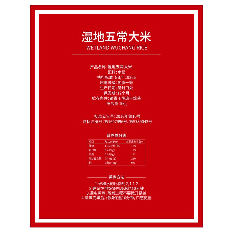 裕道府 食用 五常湿地稻花香大米(红盒) 5kg