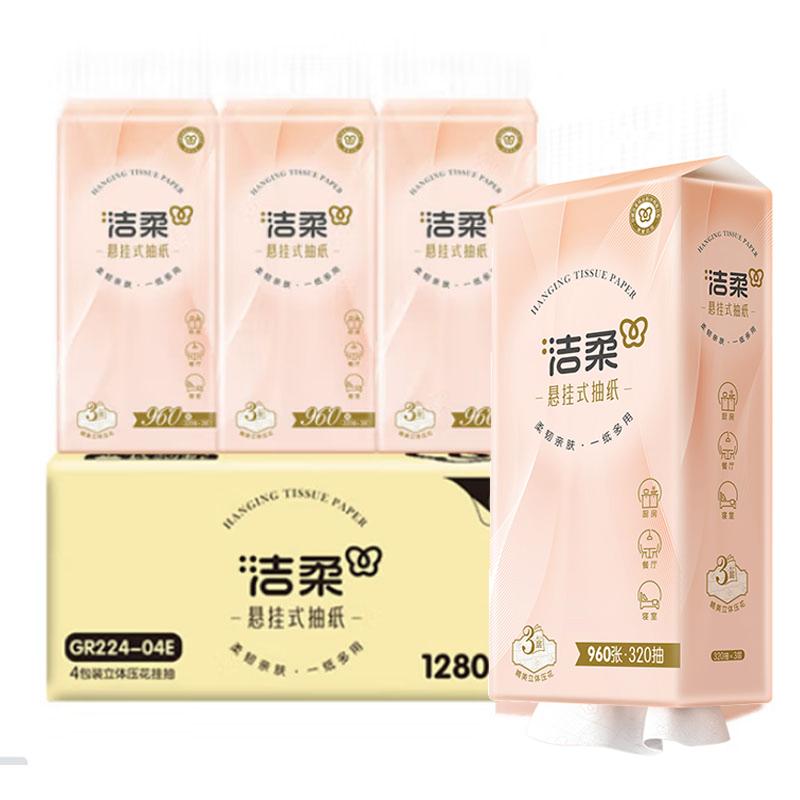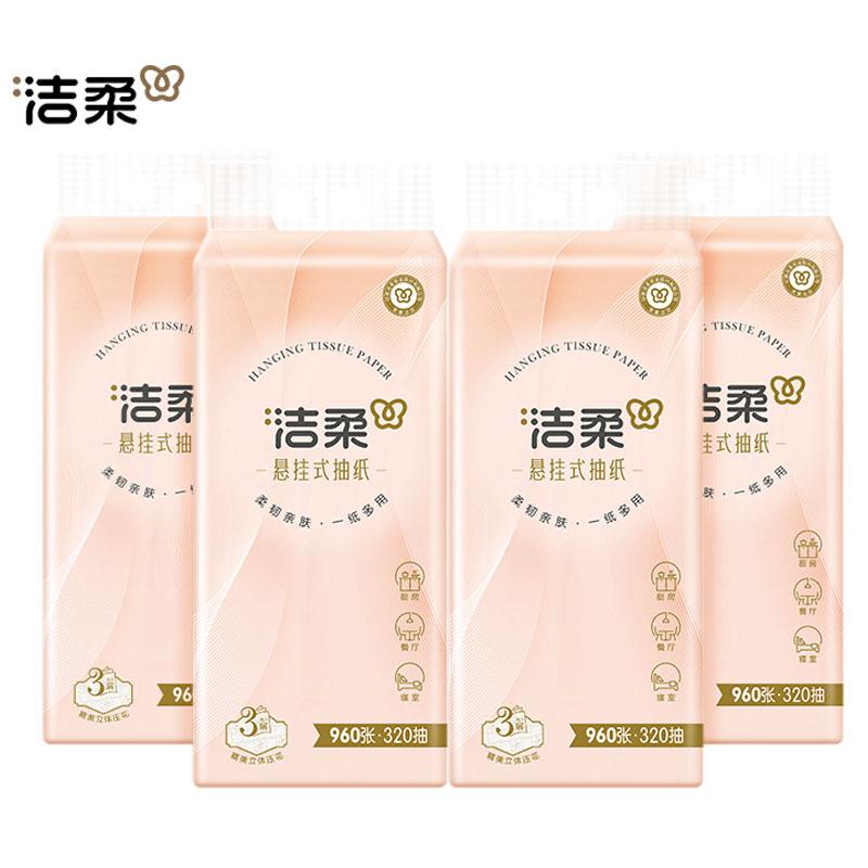 洁柔挂抽纸大包悬挂式抽纸3层320抽*4提面巾纸擦手纸卫生纸